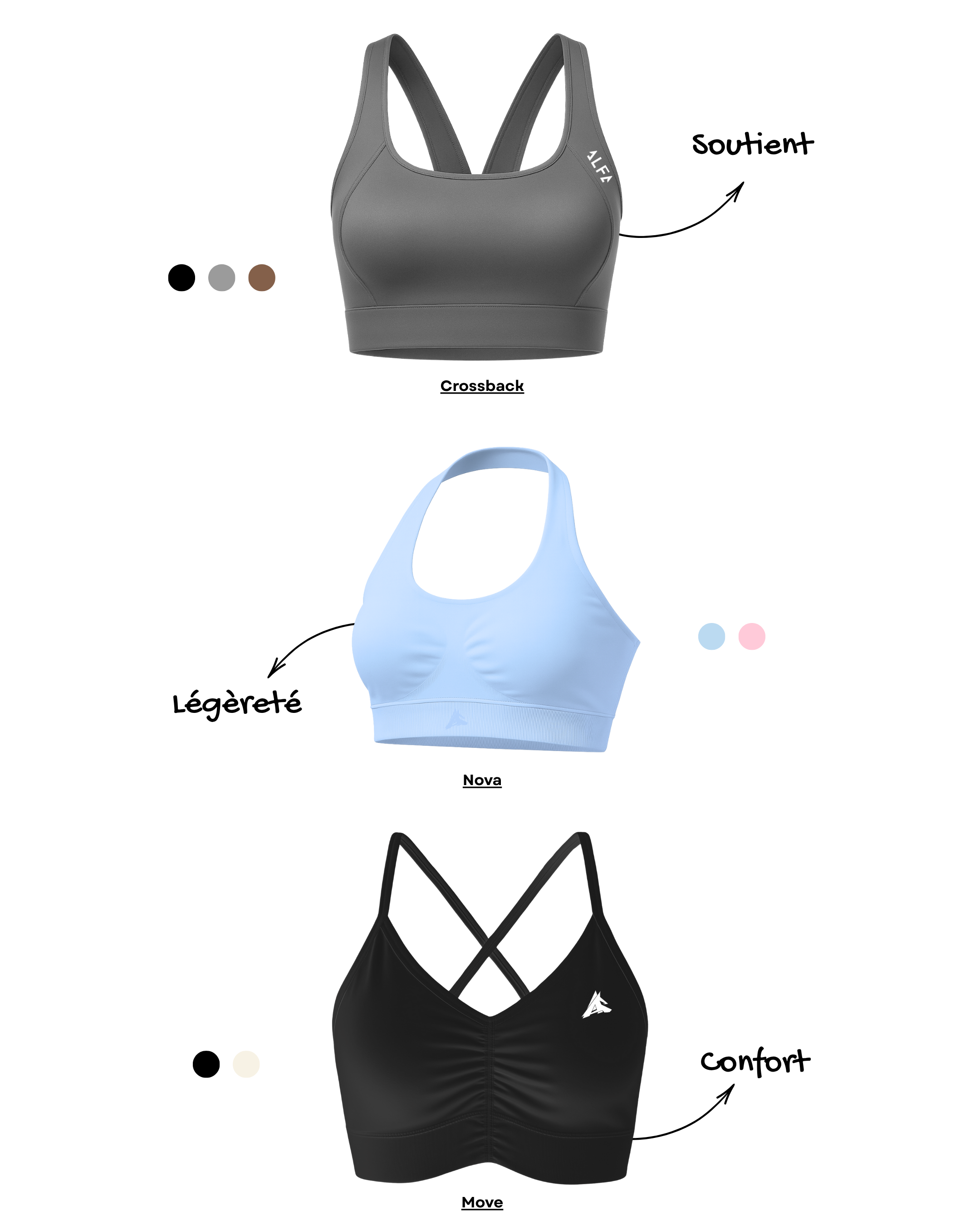 À chaque entraînement, sa brassière. Choisis celle qui t’accompagnera dans toutes tes performances.